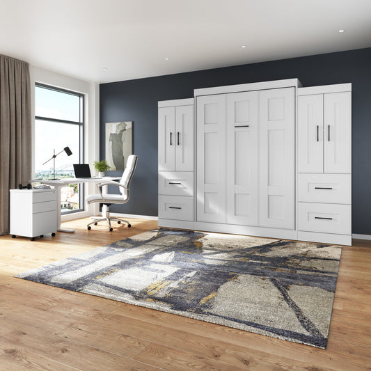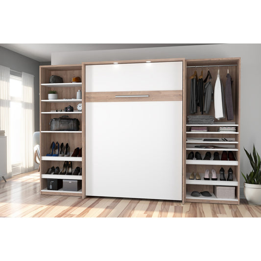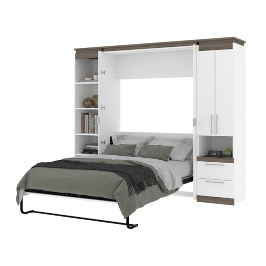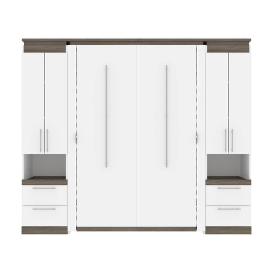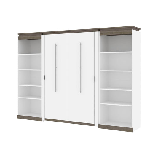 Orion 98"W Full Murphy Wall Bed with 2 Storage Cabinets and Pull-Out Shelves - Available in 2 Colours