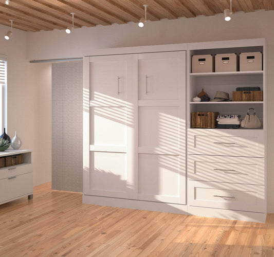 Pur Queen Murphy Wall Bed and 1 Storage Unit with Drawers (101”) in White