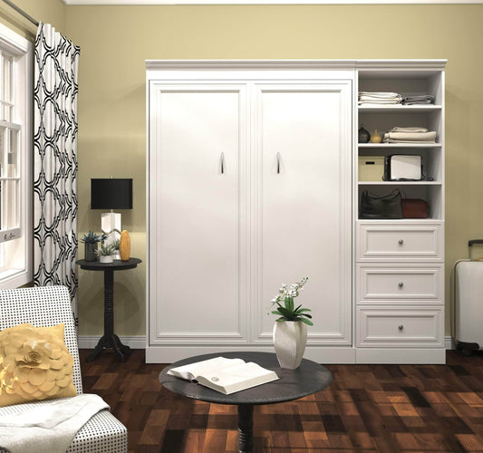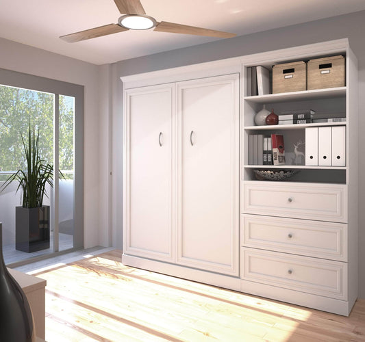 Versatile Full Murphy Wall Bed and 1 Storage Unit with Drawers (84”) - White