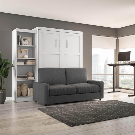 Pur Full Murphy Wall Bed, a Storage Unit and a Sofa (84“) in White