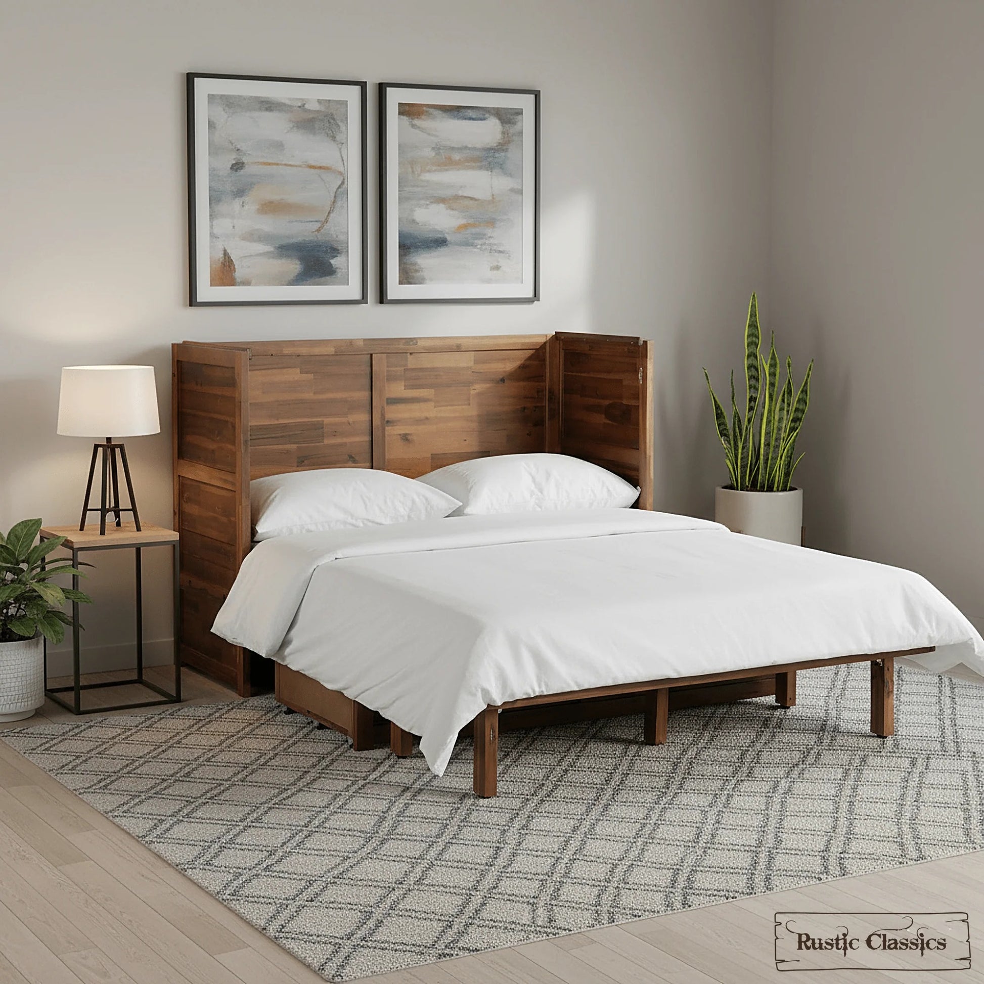 All Rustic Classics Murphy Cabinet Beds are guaranteed with a limited 1 year warranty for factory defects in the cabinet, this does not cover fading or wear of fabrics and wood or natural markings.